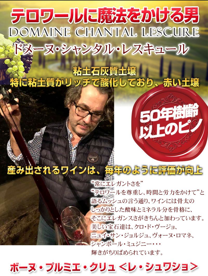 他の画像を見る コルクの選別から熟成用樽の選定まで、細部に至るまで品質に対するこだわりが光ります。フランソワ・シャベリアのワインは、テロワールの魔法を実感する贅沢な旅へと誘います テロワールに魔法をかける男【 ドメーヌ・シャンタル・レスキュール ボーヌ・プルミエ・クリュ <レ・シュワショ> 】フランソワ・シャベリアの生態系を愛するワイン。エレガントでありながら骨太な酸味とミネラルを備え、テロワールの真価を感じさせます。 New! 希少 重め 辛口 クール便選択可 通常価格 ¥ 17,600 のところ 当店特別価格 ¥ 16,900 税込 カートに入れる お気に入りに登録する
