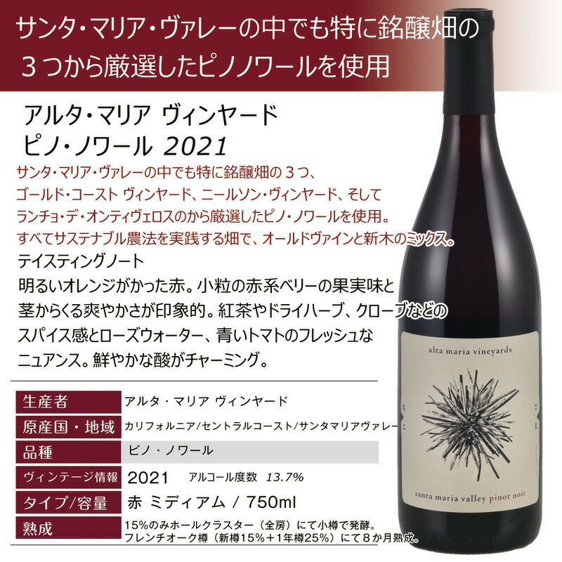他の画像を見る FIOR di SOLEが日本市場に向けて造ったプライベートブランド! 隠れた宝石のようなワイナリー!カリフォルニア ナパ・バレー 【ドリームリー ピノノワール】カリフォルニアの太陽が降り注ぐセントラル・コーストの斜面から、霧におおわれたノース・コーストの渓谷、日較差の大きいセントラル・ヴァレーで栽培されたブドウを使用! New! 重め 辛口 クール便選択可 通常価格 ¥ 3,274 のところ 当店特別価格 ¥ 3,180 税込 カートに入れる お気に入りに登録する