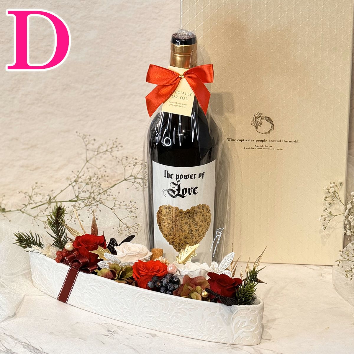他の画像を見る 新作!プリザーブドフラワーボトルタグ付き 【 おすすめ ワインギフト 】お花でギフトを演出するプリザーブドフラワーボトルタグが付いたワインギフト!瓶の底が薔薇になった可愛いボトル♪ ロゼワイン【 コート・デ・ローズ 】 お誕生日やお祝い品にも是非 贈り物に最適! コスパ◎ New! おすすめ 特別セール 重め 甘口 クール便選択可 当店特別価格 ¥ 5,980 税込 販売を終了しました。 甘くて飲みやすいコートデローズ、新作のプリザーブドフラワーボトルタグ付き! 詳細を見る お気に入りに登録する