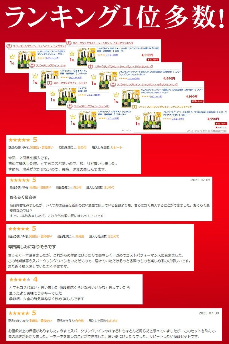 他の画像を見る 1番人気!スパークリング6本セット 人気 スパークリングワイン セット 6本 | 送料無料 辛口 瓶内二次発酵 7つ星ホテル「バージュ・アル・アラブ」で採用実績のアルケミーワインズからマジアJ、ベストヨーロピアンワイナリーが造る極辛口スパークリングなど! New! おすすめ 特別セール 軽め 辛口 クール便選択可 通常価格 ¥ 5,480 のところ 当店特別価格 ¥ 5,290 税込 夏に爽快、辛口、キリっと冷やして美味しく! 瓶内二次発酵のカヴァも入った厳選スパークリングワイン6本!おすすめです! カートに入れる お気に入りに登録する