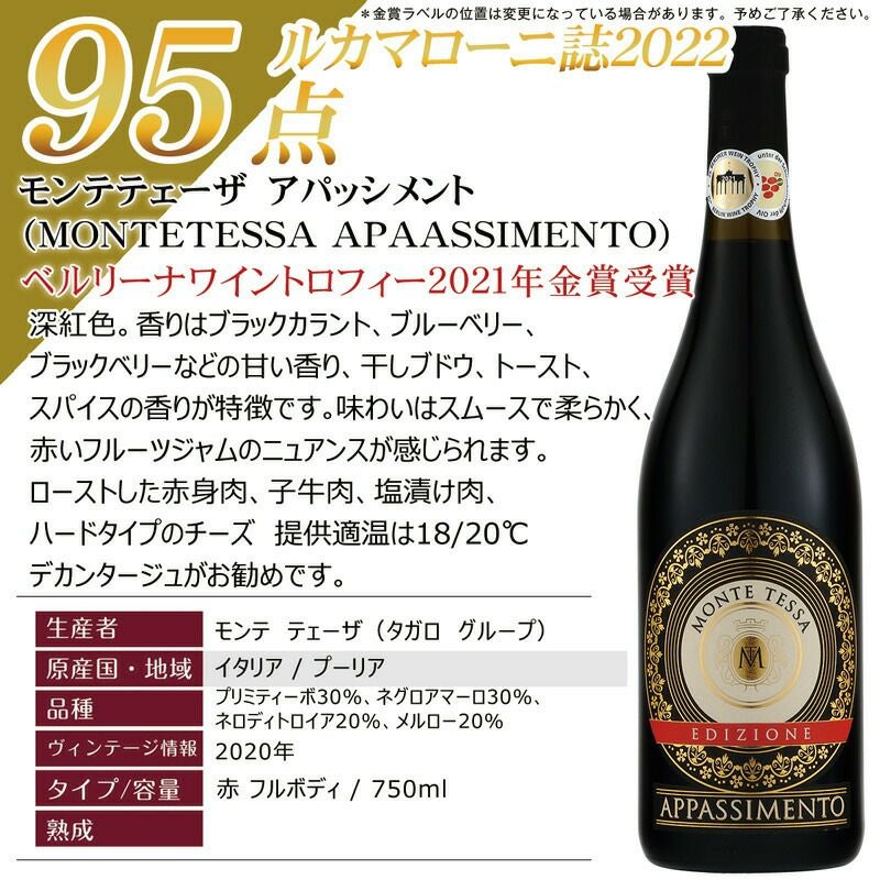 他の画像を見る ★★★★★ワイン王国ブラインドテイスティング5ツ星獲得!(2023年1月号)こっくりとまろやかジューシー!モンテテーザ アパッシメント おすすめ 重め 甘口 クール便選択可 当店特別価格 ¥ 1,980 税込 濃厚かつバランス◎熟した黒系果実を主体にメントールやバニラが香る、ジューシーな果実味とアルコールがボリューム感を生み出す、パワフルワイン! カートに入れる お気に入りに登録する