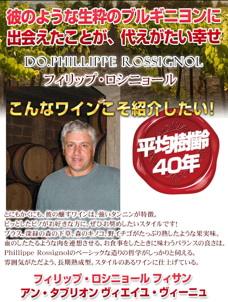 他の画像を見る ブルゴーニュでは世代交代が進むが、ここは彼が一代で築き上げた蔵元だ。なにもないところからのスタートには、かなりの苦労があっただろう。 彼のような生粋のブルギニヨンに出会えたことが、代えがたい幸せ!こんなワインこそ紹介したい【 フィリップ・ロシニョール フィサン アン・タブリオン ヴィエイユ・ヴィーニュ 】飲み頃にならないとワインを蔵出ししない、伝統のスタイルにこだわっている! New! 希少 重め 辛口 クール便選択可 通常価格 ¥ 9,900 のところ 当店特別価格 ¥ 9,700 税込 カートに入れる お気に入りに登録する