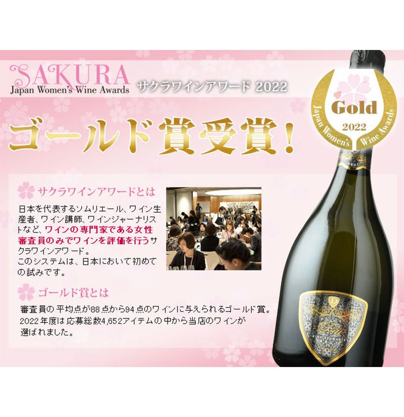 サクラワインアワード2025ゴールド!サクラワインアワード、2022ゴールド!ニューヨークタイムズ誌にてシャンパン以外の『ベストバリュー・スパークリング』1位