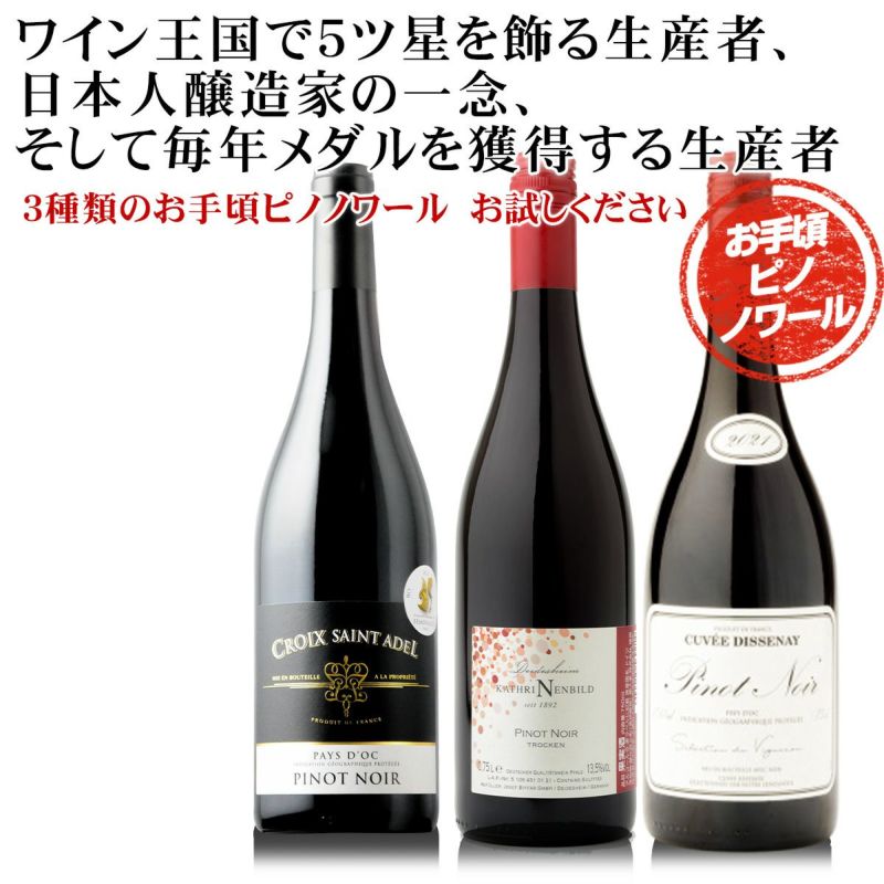 そして毎年メダルを獲得する名生産者、3種類のお手頃ピノノワール厳選です。