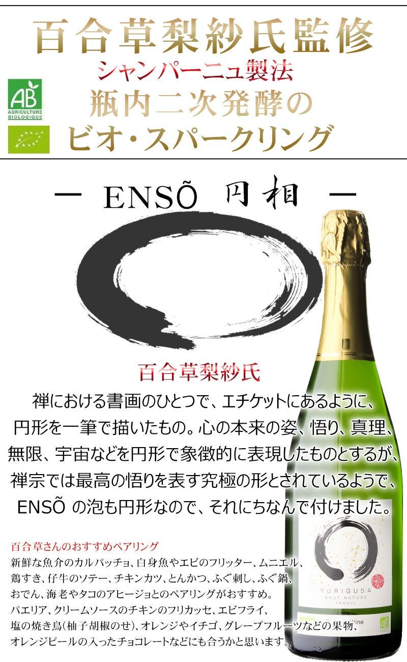 他の画像を見る 日本人初のボルドー女性醸造家、百合草梨紗氏が監修 シャンパーニュ製法 ドザージュ:0g/L 瓶内二次発酵 のビオ・スパークリング 日本人初のボルドー女性醸造家、百合草梨紗氏が監修する【 エンソ― ユリグサブリュット・ナチュール 】 クレマン・ド・ボルドー ソーヴィニヨン・ブラン100% New! おすすめ 重め 辛口 クール便選択可 当店特別価格 ¥ 4,400 税込 カートに入れる お気に入りに登録する