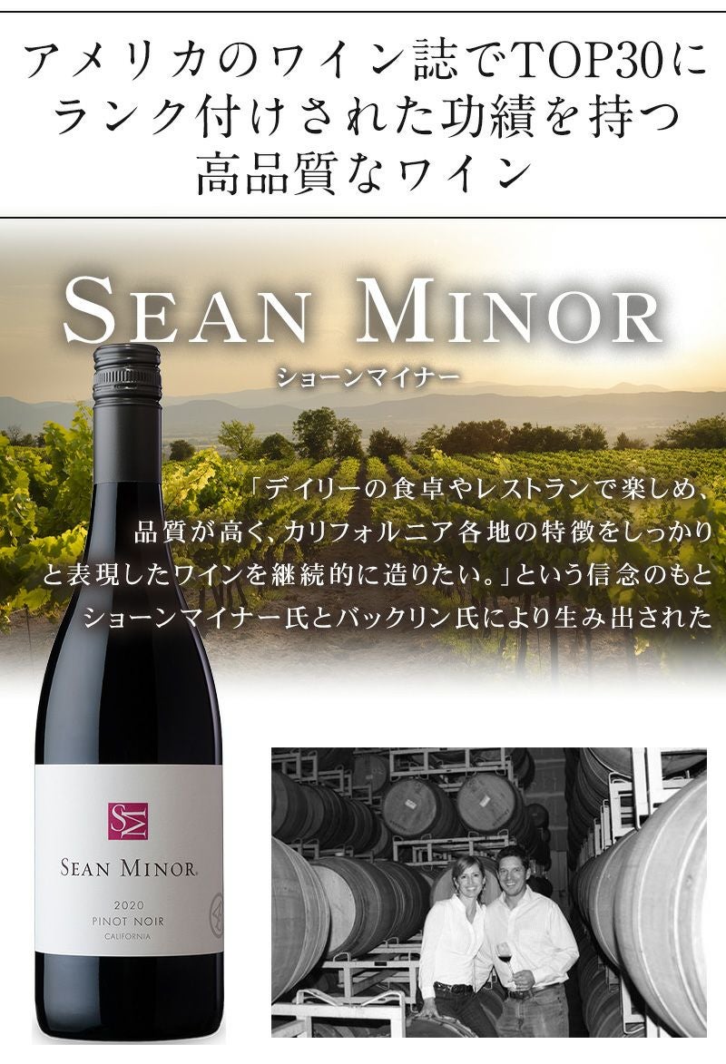 他の画像を見る BSテレ東『辰巳琢郎の葡萄酒(ワイン)浪漫』選ばれました! BSテレ東『辰巳琢郎の葡萄酒(ワイン)浪漫』ゲストのブラインドテイスティングで、「今飲みたいワイン」に選ばれました! 赤ワイン カリフォルニア ピノノワール 「ショーンマイナー・ピノノワール」 New! 特別セール 重め 辛口 クール便選択可 通常価格 ¥ 3,380 のところ 当店特別価格 ¥ 2,990 税込 在庫切れ 詳細を見る お気に入りに登録する