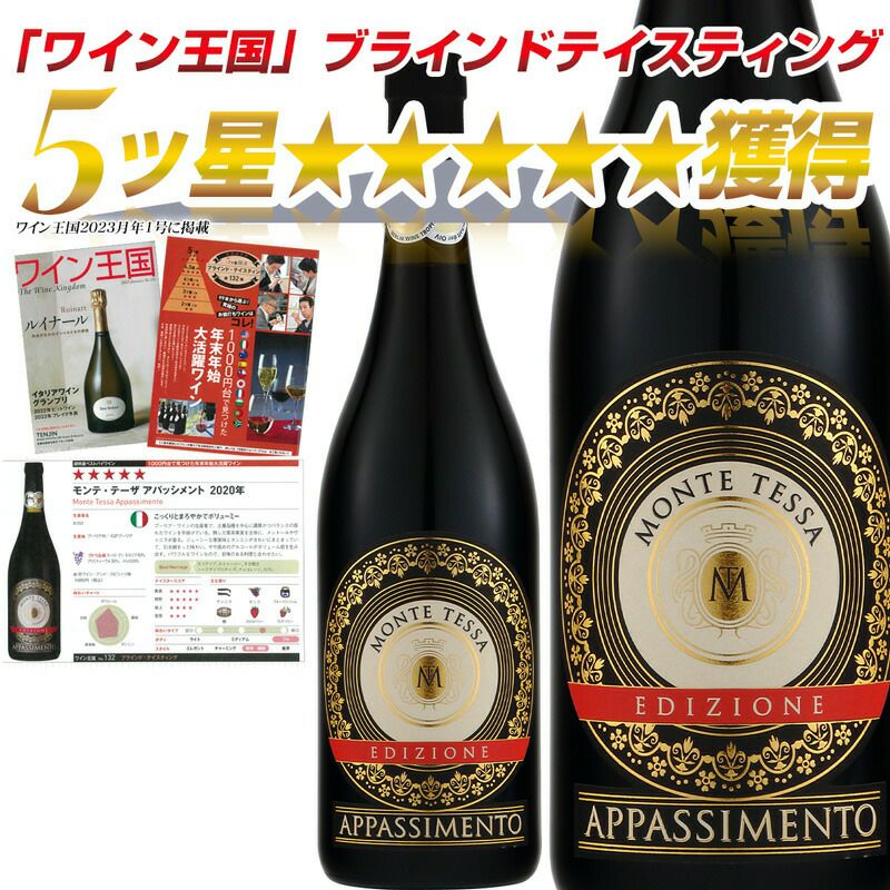 ★★★★★ワイン王国ブラインドテイスティング5ツ星獲得!(2023年1月号)こっくりとまろやかジューシー!モンテテーザ アパッシメント