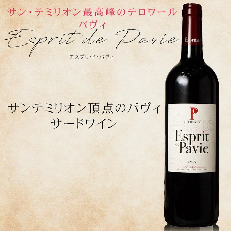 サンテミリオンで最も高額なワインのうちの一つであるパヴィを少しでも楽しめるワインが、サードワインのエスプリ・ド・パヴィ フレンチオーク樽熟成15カ月(パヴィやモンブスケで使用された樽を使用)