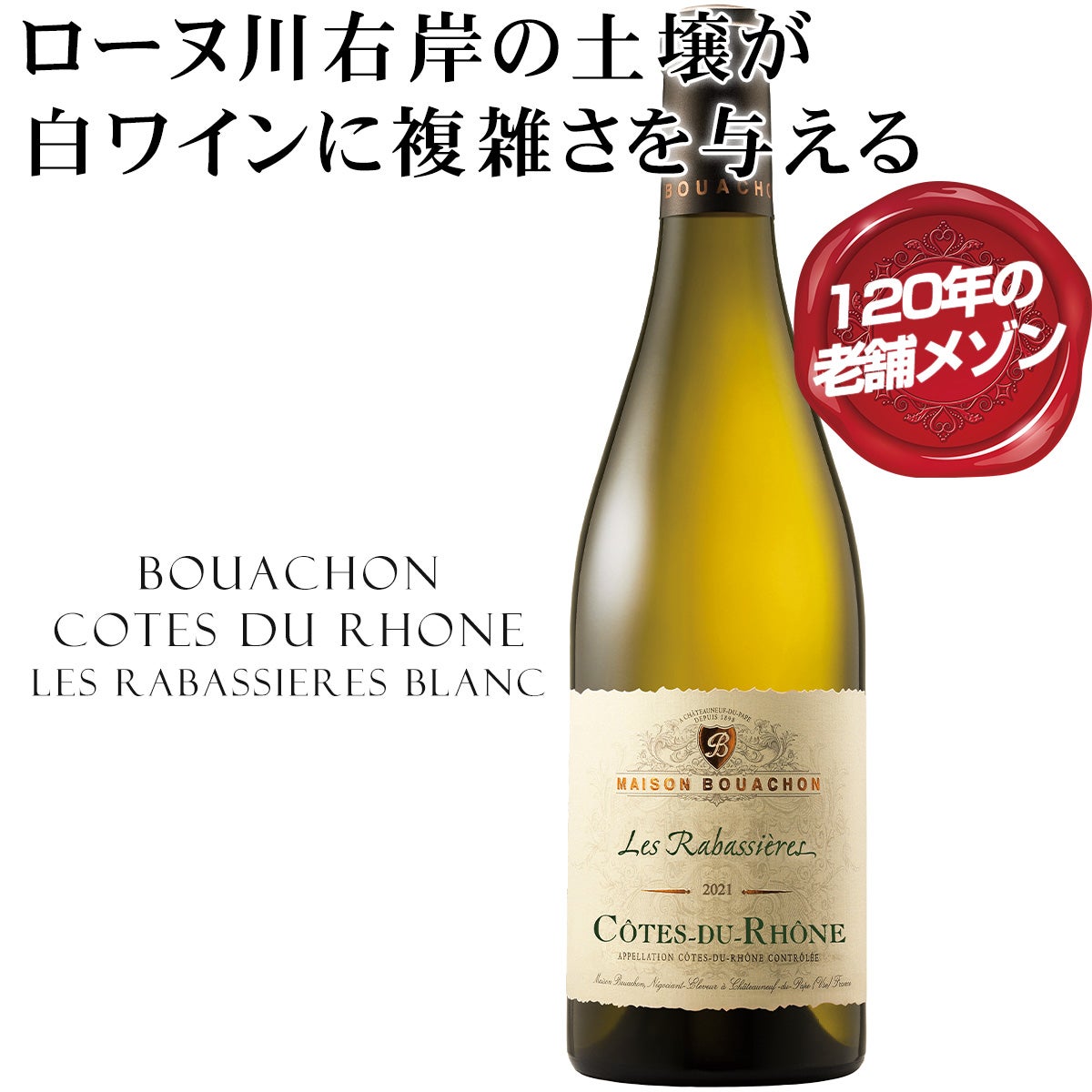 フランス 原産地[アペラシオン]:コート・デュ・ローヌ A.C. シャトー・ヌフ・デュ・パプのブドウ栽培研究から始まった120年の歴史を有する老舗メゾン、【ブアション コート・デュ・ローヌ・レ・ラバシエール・ブラン】樽製造業を営んでいたファミリーが造るエレガントワイン