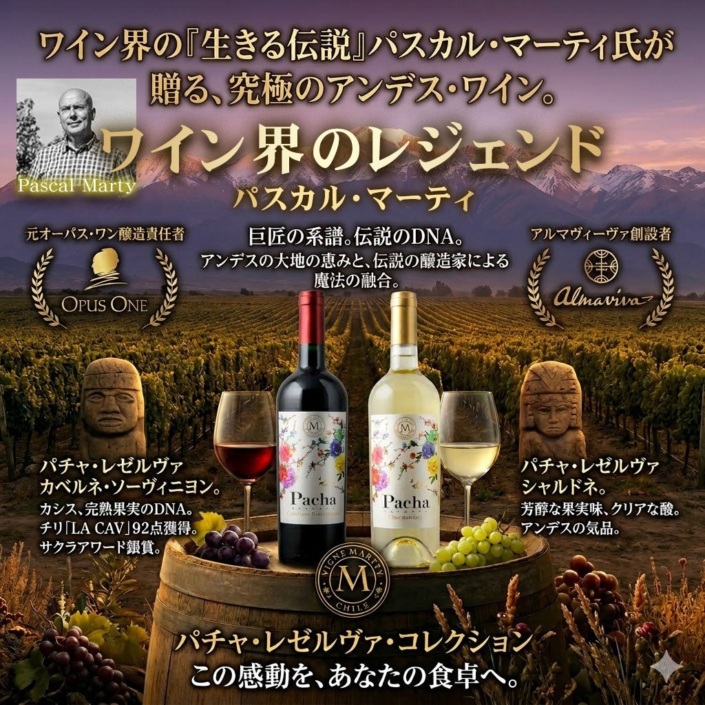 ワインギフト ワイン界のレジェンド 五大シャトーの1つ、「ムートン・ロートシルト」の元ワインメーカーでありカリフォルニアの高級カルトワイン「オーパス・ワン」とチリの最高峰「アルマヴィーヴァ」の創設者パスカルマーティ氏のワイン【パチャ・レゼルヴァ】赤白ギフト