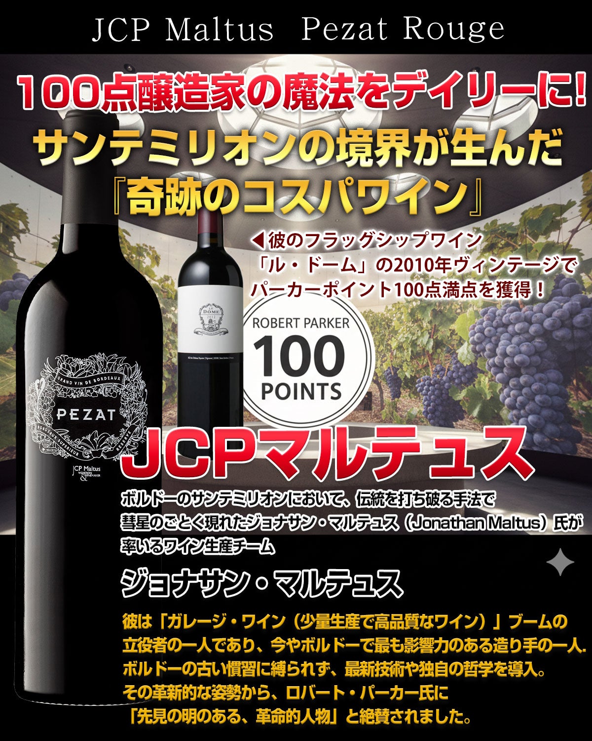 他の画像を見る 彼らが造る最高級のシングルヴィンヤードワインと同じ設備と製法を用いて造られています これは非常におすすめ!!パーカーが絶賛するサンテミリオンの新星が最初に手掛けたシャトー【JCP マルテュス シャトー テシエ】ワイン醸造家兼オーナー、ジョナサン マルテュスはロバート・パーカーが「先見の明のある、革命的人物」と評した世界最高のワイン醸造家の一人! New! 重め 辛口 通常価格 ¥ 5,119 のところ 当店特別価格 ¥ 4,999 税込 カートに入れる お気に入りに登録する