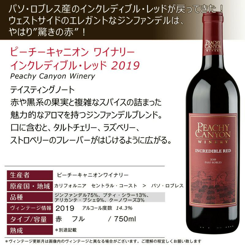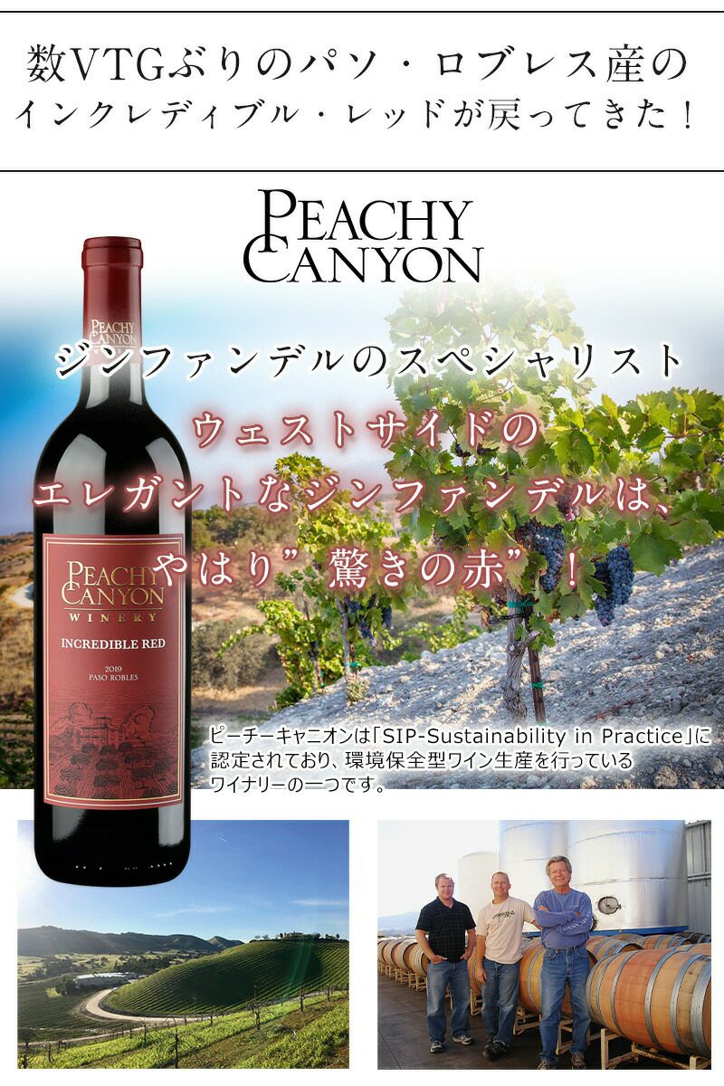 他の画像を見る ★ジンファンデルのスペシャリスト!ピーチー・キャニオン ”インクレディブル・レッド” ジンファンデル ★2019 パソロブレス 数VTGぶりのパソ・ロブレス産のレッドが戻ってきた!驚きの赤”! 重め 辛口 クール便選択可 当店特別価格 ¥ 2,198 税込 【2013 Wine Enthusiast ベストバイ】 【2012 California State Wine Competition 金賞】 【2010 Wine Enthusiast ベストバイ】 【2007 Wine Enthusiast ベストバイ】 カートに入れる お気に入りに登録する