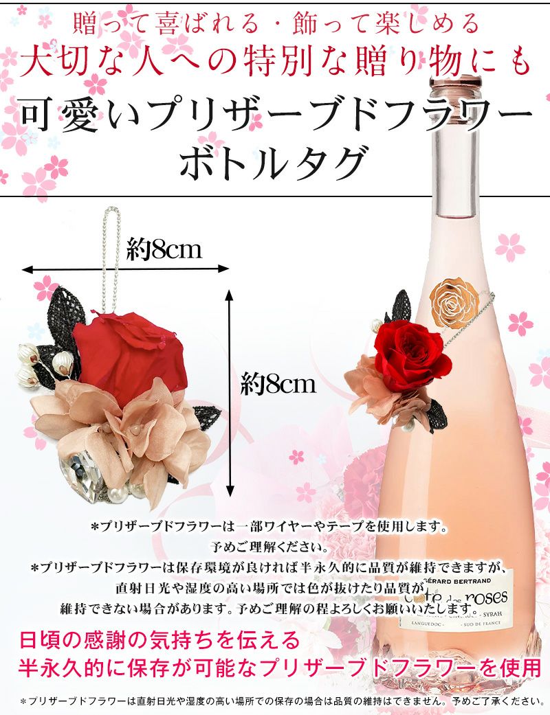 他の画像を見る 新作!プリザーブドフラワーボトルタグ付き 【 おすすめ ワインギフト 】お花でギフトを演出するプリザーブドフラワーボトルタグが付いたワインギフト!瓶の底が薔薇になった可愛いボトル♪ ロゼワイン【 コート・デ・ローズ 】 お誕生日やお祝い品にも是非 贈り物に最適! コスパ◎ New! おすすめ 特別セール 重め 甘口 クール便選択可 当店特別価格 ¥ 5,980 税込 販売を終了しました。 甘くて飲みやすいコートデローズ、新作のプリザーブドフラワーボトルタグ付き! 詳細を見る お気に入りに登録する
