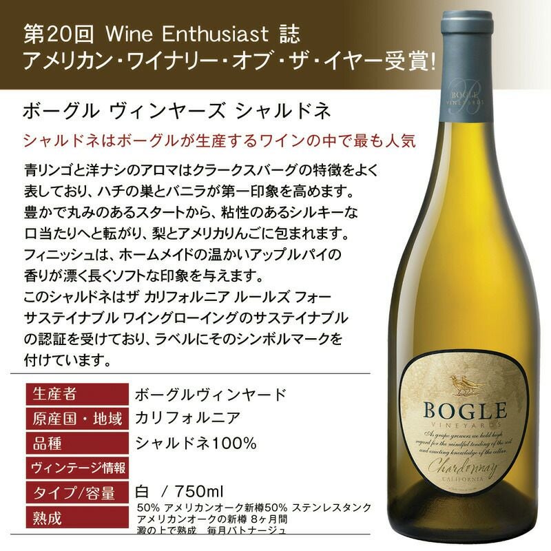 他の画像を見る 【お得6本セット】ボーグルヴィンヤーズ シャルドネ6本セット 【超コスパワインの代名詞Bogle】 シャルドネ 2020 第20回 Wine Enthusiast誌 アメリカン・ワイナリー・オブ・ザイヤー受賞! コスパ◎ 重め 辛口 クール便選択可 通常価格 ¥ 15,352 のところ 当店特別価格 ¥ 14,900 税込 州内の秀逸な葡萄畑から葡萄を調達し、クラークスバーグにあるBogleの自社畑で栽培した葡萄とブレンドをして品種の特性とCA州の葡萄栽培地域のテロワールの素晴らしさを表しています カートに入れる お気に入りに登録する