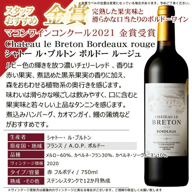 他の画像を見る 旨い!【スタッフのお気に入り 太鼓判】 シャトー ル ブルトン 【“ワイン通”向け】 フランスボルドー 赤ワイン 果実味たっぷりであり、酸・アルコール・タンニンのバランスが優れ複雑味、深み、余韻どれを判定しても◎ おすすめ 重め 辛口 クール便選択可 通常価格 ¥ 1,450 のところ 当店特別価格 ¥ 1,290 税込 在庫切れ 巧みなボルドーブレンドに仕上がっており、ソムリエ、スタッフたちのお気に入りのボルドーです! ワイン通の方々におすすめです! 詳細を見る お気に入りに登録する