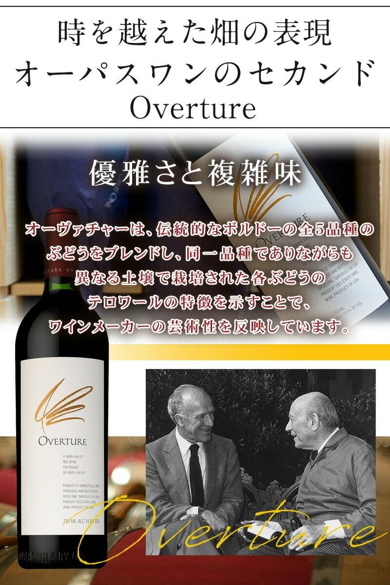 他の画像を見る Overture by Opus One オーパスセカンド ボルドーの一流シャトーの伝統にならい誕生したオーパスのセカンド、オーヴァチャー(Overture) 重め 辛口 クール便選択可 当店特別価格 ¥ 39,000 税込 オーヴァチャー(オーバチュア)は複数のヴィンテージをブレンドすることで、よりしなやかでふくよかなものとなり、リリース直後でもお楽しみいただけます。 カートに入れる お気に入りに登録する