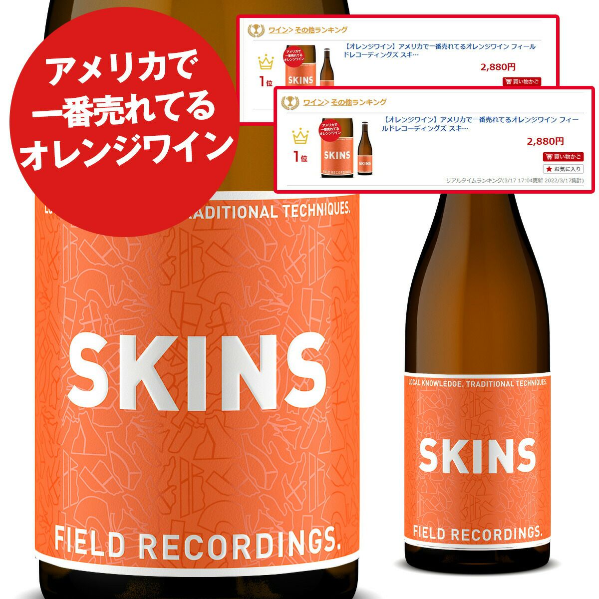 他の画像を見る おすすめオレンジワイン!【オレンジワイン】アメリカで一番売れてるオレンジワイン フィールドレコーディングズ スキンズ 通常より遥かに長いスキンコンタクトで驚きの旨味! おすすめ 重め 辛口 クール便選択可 当店特別価格 ¥ 2,900 税込 フィールド・レコーディングスのオレンジワインがサンセット・マガジン誌が発表する2018年トップ100ワインにランクイン。スキンコンタクトのまま60-90日。アカシア樽にて6か月熟成 カートに入れる お気に入りに登録する