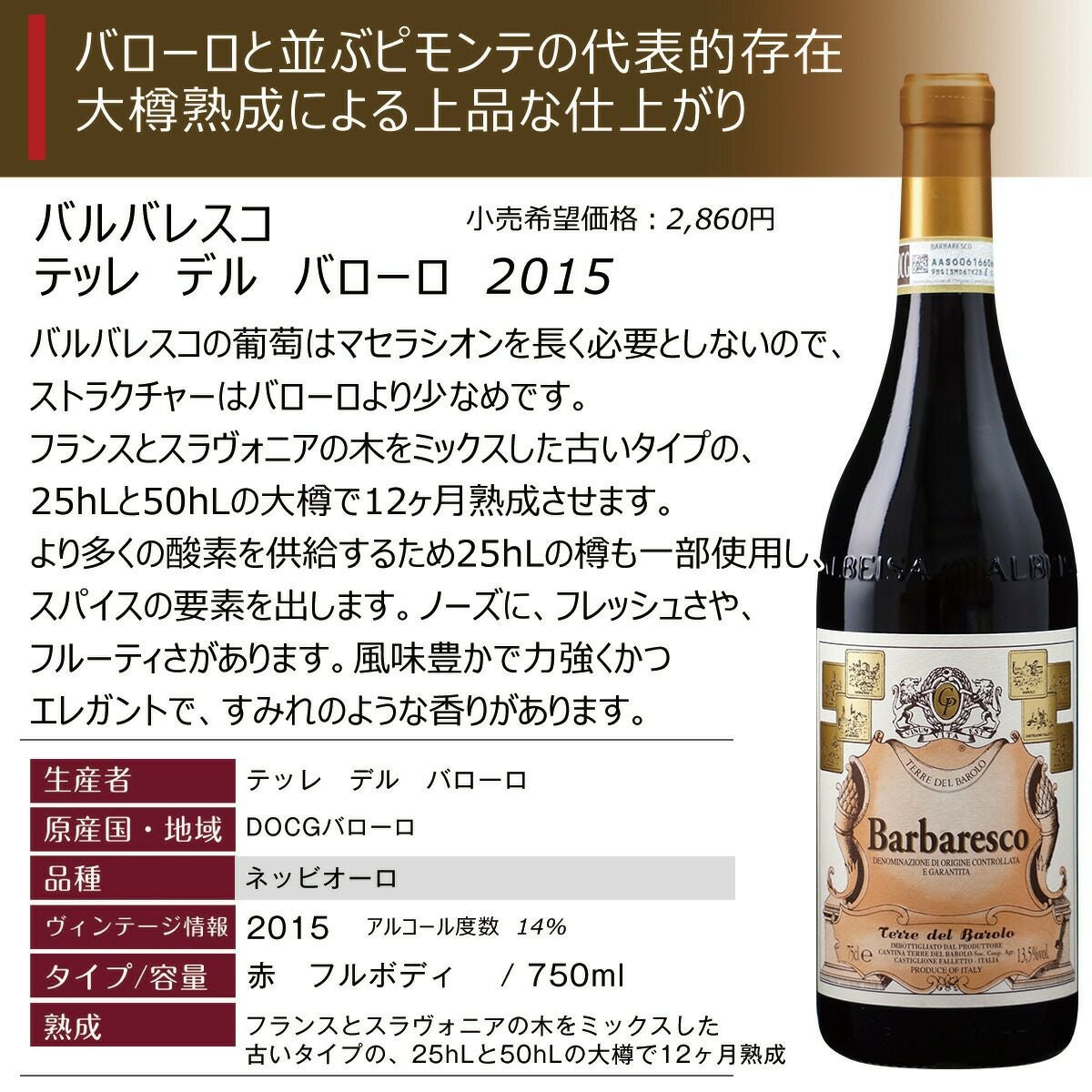 他の画像を見る 2020年版「Weinwirtschaft」誌でイタリア生産者組合の第1位に輝く!バルバレスコ テッレ デル バローロ イタリア ピエモンテ バローロ ネッビオーロ★ギフト・プレゼントに★【ギフト】 重め 辛口 クール便選択可 通常価格 ¥ 3,172 のところ 当店特別価格 ¥ 2,980 税込 バローロと並ぶピモンテの代表的存在。フランスとスラヴォニアの木をミックスした古いタイプの、25hLと50hLの大樽で12ヶ月熟成大樽熟成による上品な仕上がり カートに入れる お気に入りに登録する