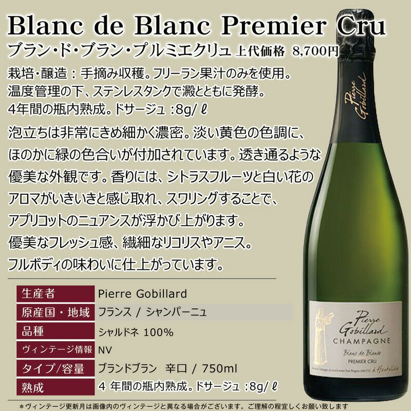 他の画像を見る ドンペリニヨン修道士の肖像を描く事を許されたシャンパーニュメゾン「 Pierre Gobillard 」ブリュット・ロゼ・プルミエクリュ&ブラン・ド・ブラン・プルミエクリュ おすすめ 重め 辛口 クール便選択可 通常価格 ¥ 16,500 のところ 当店特別価格 ¥ 15,980 税込 シャンパーニュ生誕の地ドンペリニョンの肖像を描くことが許されたシャンパンは僅か3社(JM Gobillard , G Tribaut )。デュセールジュルベールワインガイド5ッ星ブランドブラン カートに入れる お気に入りに登録する