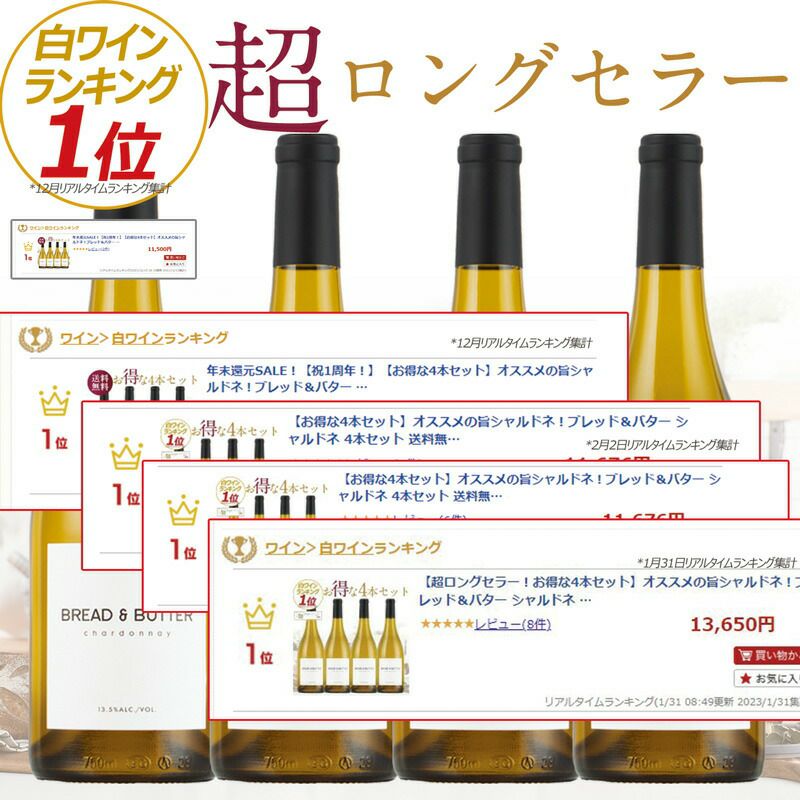 他の画像を見る 【1番人気 超ロングセラー!】 【お得な4本セット】オススメの旨シャルドネ!ブレッド&バター シャルドネ 4本セット Bread & Butter Chardonnay 白ワイン カリフォルニア ブレッドアンドバター おすすめ 重め 辛口 クール便選択可 通常価格 ¥ 13,800 のところ 当店特別価格 ¥ 13,680 税込 【めちゃ旨シャルドネ!】カリフォルニアらしさを追求する米大統領ランチミーティングにも選ばれたシンデレラワイン!ブレッド&バター[ブレッドアンドバター シャルドネ] カートに入れる お気に入りに登録する