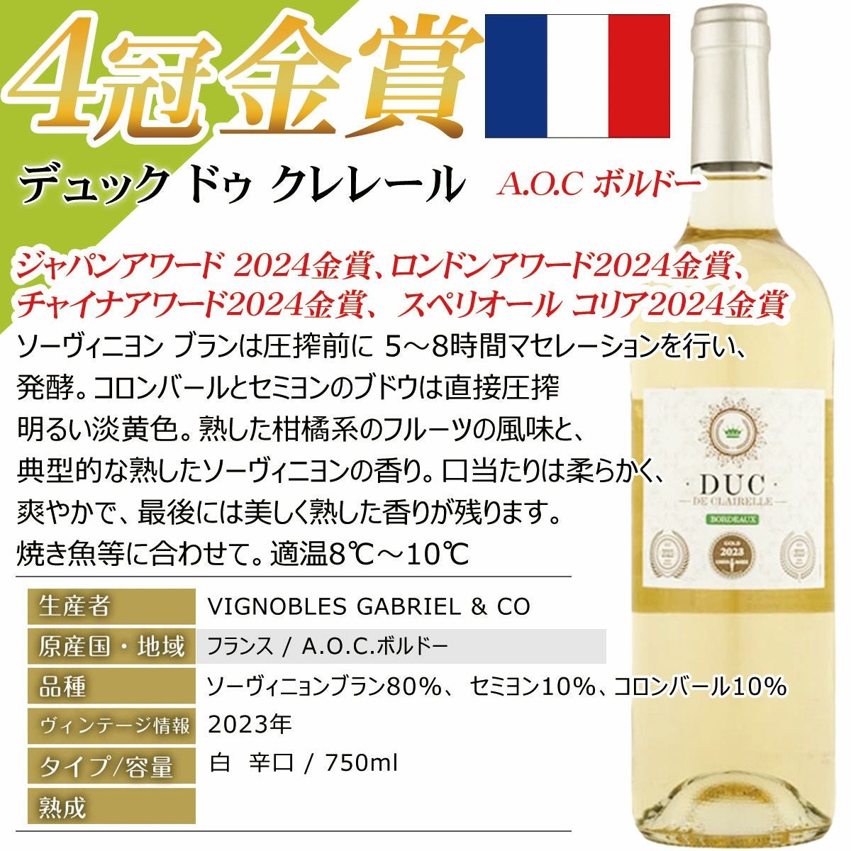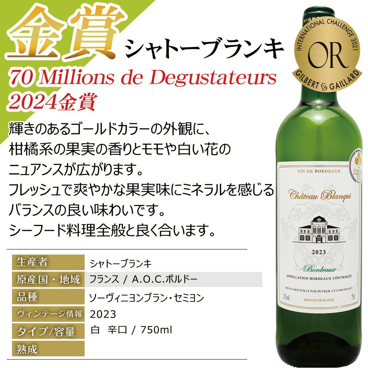他の画像を見る 毎日のお食事に合わせやすい、ALL金賞豪華な白11本!フランス銘醸地から厳選・飲み比べ! おすすめ白ワインセット!フランス銘醸地 すべてボルドー以上 上級入り 人気の白ワイン セット 辛口 送料無料 ALL金賞 新11本セット 魚と野菜の旨味を引き立てる!お肉は勿論、お魚、魚介・海の幸、お野菜、山菜、ハーブ、香辛料、パスタにも!キリっと冷やして!:EA-P-47 お魚料理におすすめ 軽め 辛口 クール便選択可 通常価格 ¥ 19,800 のところ 当店特別価格 ¥ 11,490 税込 カートに入れる お気に入りに登録する