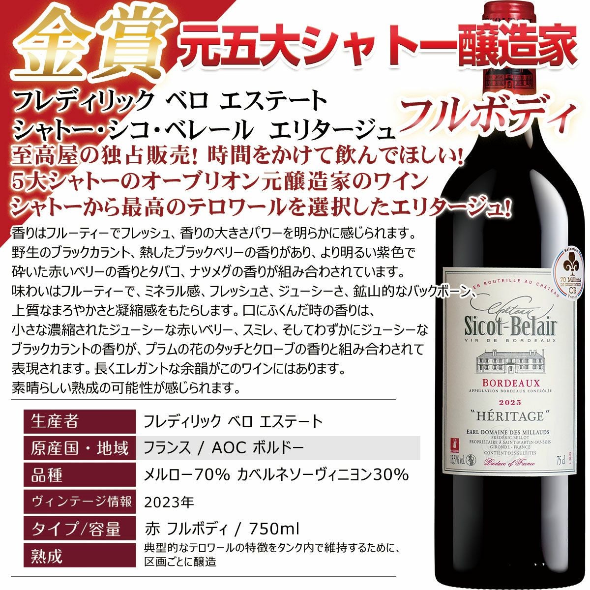 他の画像を見る 高評価・高コスパのボルドー赤白セット 格付けはすべてフランス ボルドー以上!【*格上メドックが必ず入ります!】 更にあの5大シャトー、オーブリオン元醸造家作品入り!世界中のワインラヴァ―に愛されるフランスボルドーから 赤白セット 毎日のお食事に合わせやすい 赤ワイン3本 白ワイン2本:x-er-prw53-u5 再入荷 おすすめ お肉料理におすすめ お魚料理におすすめ 重め 辛口 クール便選択可 通常価格 ¥ 6,220 のところ 当店特別価格 ¥ 5,980 税込 あの5大シャトー、オーブリオン元醸造家作品入り!充実ラインナップで厳選! カートに入れる お気に入りに登録する