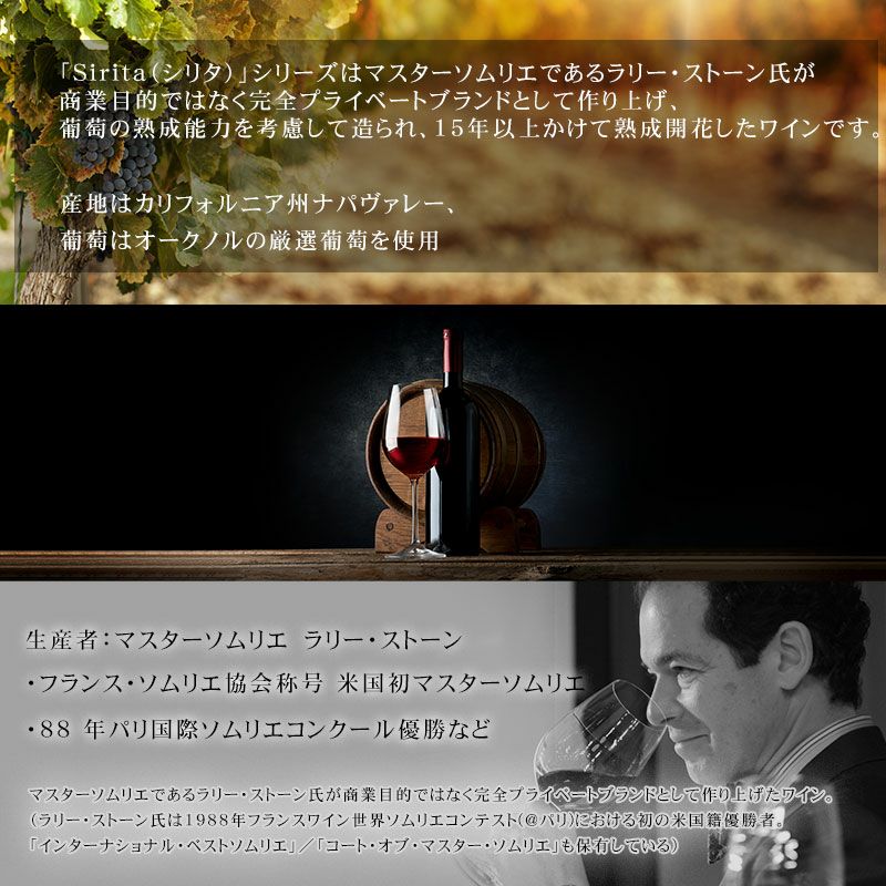 他の画像を見る 【VT:2003年/2005年】 お得!【古酒オープナー1個付き★太鼓判】ナパヴァレーの2003年/2005年バックヴィンテージ3品種セット シリタヴィンテージワイン 3本セット カリフォルニア ナパヴァレー カベルネ メルロー フラン ナパ フルボディ お肉料理におすすめ 重め 辛口 クール便選択可 通常価格 ¥ 26,998 のところ 当店特別価格 ¥ 25,000 税込 在庫切れ 当店の看板商品!独特のレンガ色 スワリング時のレックス 熟成開花のナパのバックヴィンテージワインをご賞味ください。ギフトやプレゼントにも最適! 詳細を見る お気に入りに登録する