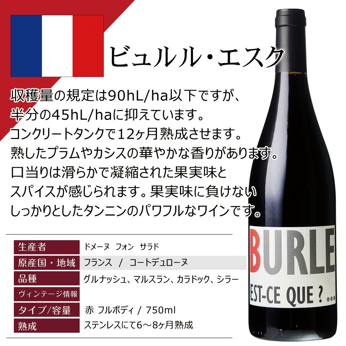 他の画像を見る 魅力的な熟成、フレンチオークとアメリカンオークにて28ヵ月熟成(フレンチ90%のうち新樽74%、アメリカン10%) メドック格付け第三級のシャトージスクール。抜群のコストパフォーマンスと、ヴィンテージの良し悪しに関わらず高いクオリティを保ち続ける安定感が魅力のシャトーです New! 再入荷 おすすめ 重め 辛口 クール便選択可 通常価格 ¥ 18,900 のところ 当店特別価格 ¥ 17,900 税込 カートに入れる お気に入りに登録する