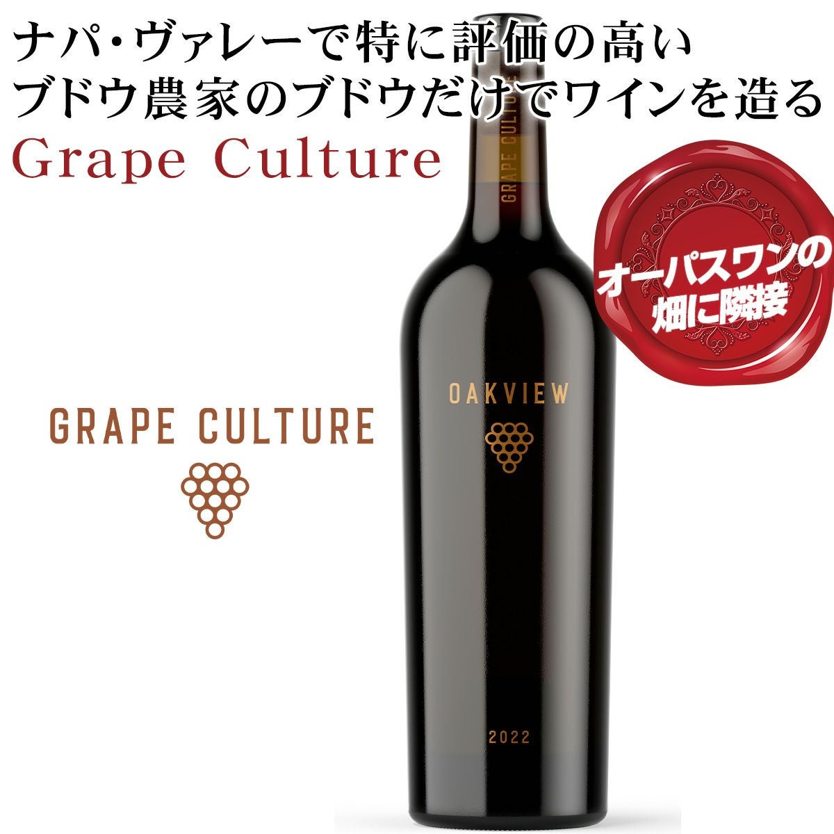 他の画像を見る グレープ・カルチャーの大半が特定の畑で生産されており、その土地独特のテロワールを表現する オーパスワンに隣接 オークヴィルの北東オークヴュー【グレープ・カルチャー オークヴィル カベルネソーヴィニヨン】オークヴィルのカベルネ・ソーヴィニヨンの特徴を最大限に引き出すワイン造り New! 重め 辛口 クール便選択可 通常価格 ¥ 19,800 のところ 当店特別価格 ¥ 19,800 税込 カートに入れる お気に入りに登録する