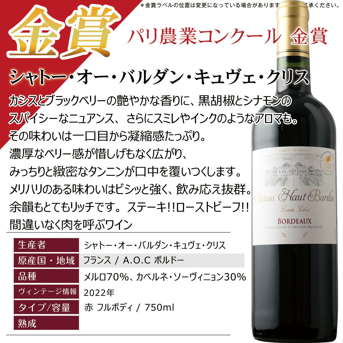 他の画像を見る 送料無料!ロングセラー人気商品! おすすめ!メドックの守護神、エリックボワスノ氏醸造作品入り!赤ワインセット 金賞 コスパ 赤ワイン セット | フルボディ オーブリオン元醸造家作品入り!豪華内容 送料無料 フランス ボルドー フルボディ メルロー カベルネ 内祝い お歳暮 お祝い プレゼント 贈り物:P51 コスパ◎ おすすめ お肉料理におすすめ 重め クール便選択可 通常価格 ¥ 11,998 のところ 当店特別価格 ¥ 11,800 税込 ブルゴーニュと並ぶフランスワインの名産地『上級』という意味のボルドーシュペリュールやトリプル金賞・ダブル金賞など毎日のお食事に合わせられるようバランスよくセレクトしました! カートに入れる お気に入りに登録する